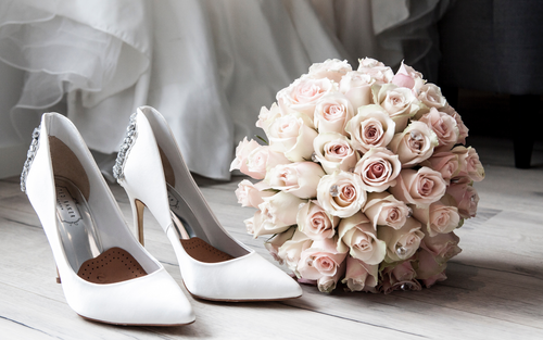 Encuentra todo el look de nuestra novia, aretes, velo y vestido.